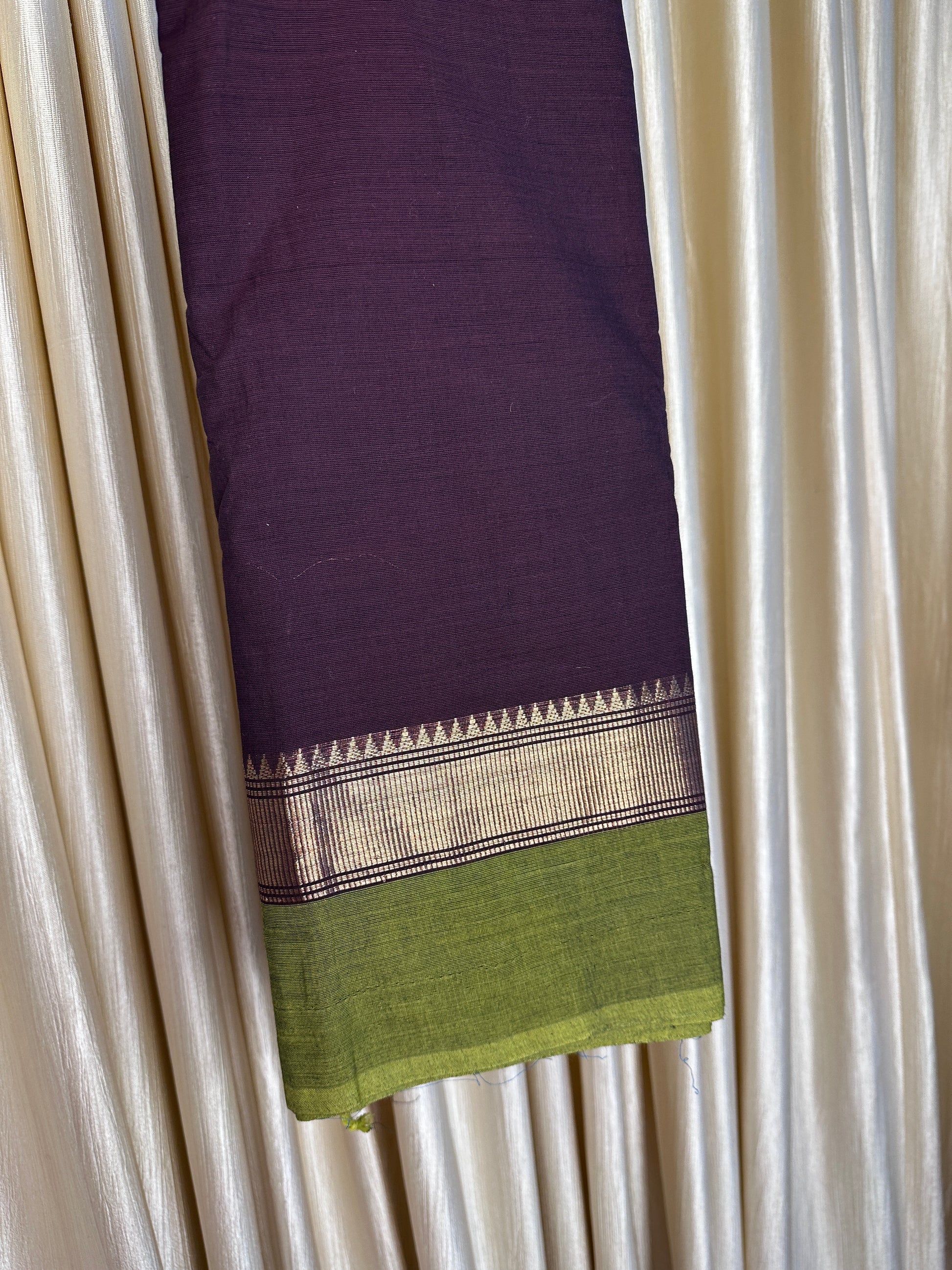 Coffee brown and green Chettinad cotton saree with running blouse